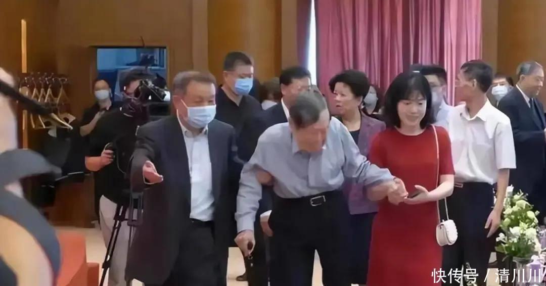 在这张照片中,杨振宁先生被亲友们紧密地环绕着,他满脸黄斑,白发苍苍,但眼中依然闪烁着智慧的光芒。而一旁的翁帆则素颜干净,气质温婉,她紧紧依偎在杨振宁先生的身旁,仿佛是他最坚实的后盾。