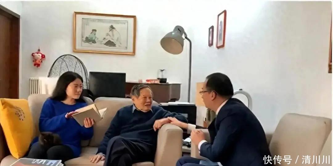 在温馨的家中,杨振宁先生身着舒适的深色家居服,显得从容不迫。而他的妻子则选择了淡雅的蓝色上衣与黑色长裤,简约中透出优雅。两人围坐在沙发上,相互交谈,居家打扮不仅展现了他们的日常风采,更增添了几分亲切与和谐。