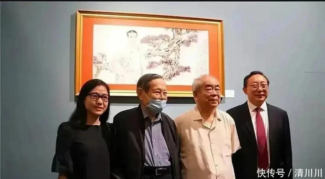在画展的合影中,杨振宁先生携妻子翁帆与好友范曾并肩而立,他们的面容洋溢着愉悦与满足。杨先生精神矍铄,眼中闪烁着智慧的光芒,妻子则面带微笑,温柔依偎在他身旁。好友们也是神采奕奕,彼此间的默契与亲密溢于言表。整个合影充满了和谐与幸福,展现了他们的深厚情谊和对艺术的共同热爱。
