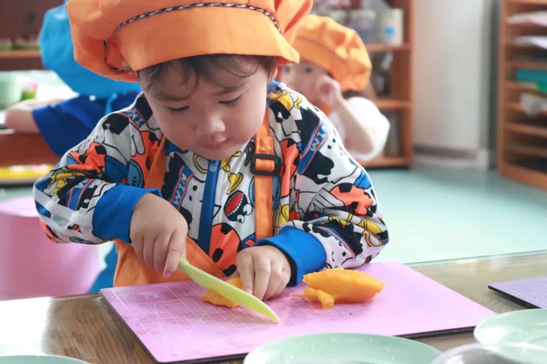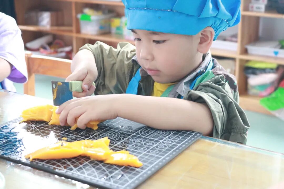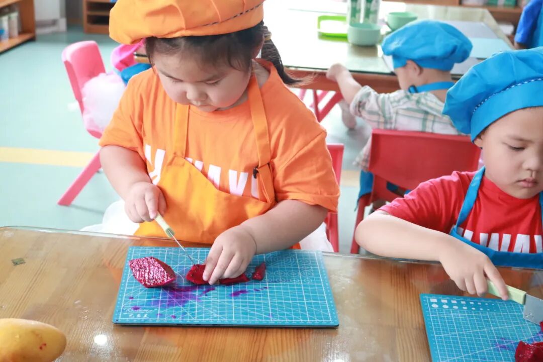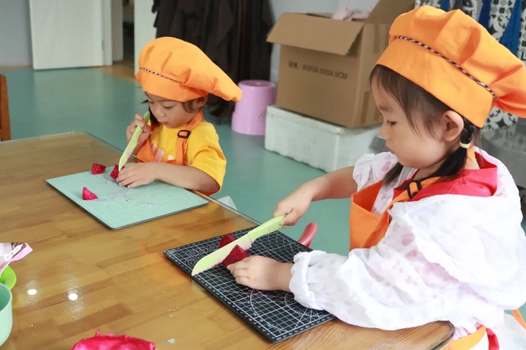 首先,我惊讶于孩子们的动手能力和专注度。尽管他们的手指还稍显稚嫩,但在老师的引导和帮助下,他们小心翼翼地切着水果,那种认真和专注的表情让人忍不住想要称赞。通过这样的实践活动,孩子们不仅学会了基本的操作技巧,更重要的是培养了他们的耐心和细致。