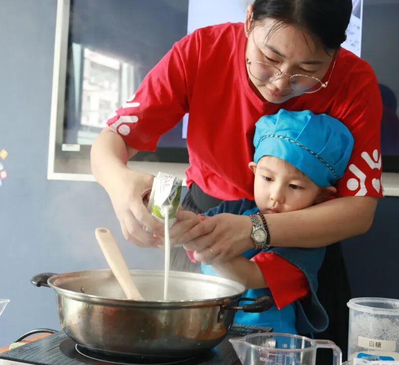 薛老师细心地为孩子们讲解双皮奶粉的制作方法与变好吃的“秘诀”,快跟着老师看一看、学一学、做一做吧!
