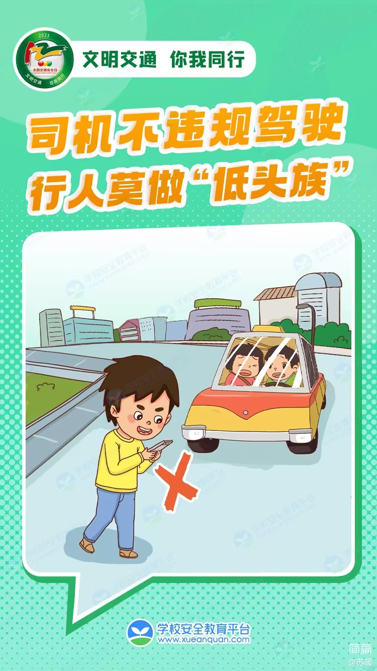 出行时请遵守交通规则,不闯红灯、不逆行、不随意横穿马路。骑行自行车或电动车时,请佩戴好安全头盔,注意避让行人和车辆。乘坐公共交通工具时,请排队有序上车,不要拥挤、推搡。尽量避免夜间单独出行,如需外出请告知家人或朋友,并保持联系。