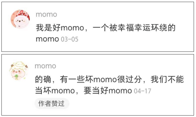 Momo was originally the default username for new accounts on Douban or Xiaohongshu. It then became popular in Douban communities like Goose Group — members used it to safely gossip about celebrities without being harassed by competing fandoms.