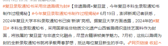 前几天,#复旦录取通知书采用非遗潞绸为封#冲上热搜,不少同学表示:想重新高考一次!