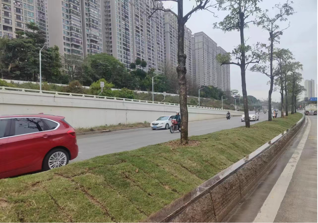 日前,绿化队已完成对护堤路(潮州大道至湘桥枫溪交界路段)绿化带的升级改造工作。在保留原有的盆架子、细叶榄仁、红绒球、串钱柳和黄金香柳等乔灌木基础上,去除老化地被灌木,清理杂草杂物,铺植台湾草卷,并对下缘线过低、参差不齐的树木进行修剪,形成通透的绿化空间。