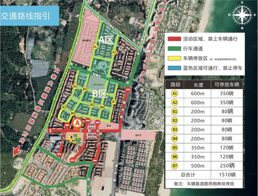 如下图所示,在绿色道路可靠边临时停车,红色区域禁止停车,请大家尽早前往活动现场,避免交通拥堵