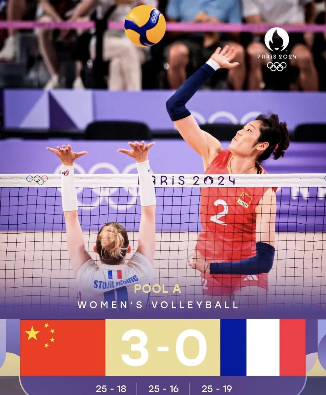 8月2日凌晨,中国女排第二轮比赛迎来东道主法国队,最终以3:0的比分获胜,取得小组两连胜,跃居小组第一,提前锁定八强席位!