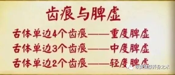 对普通人而言,还有一种更简单的经验方法,如果发现舌头上两侧齿痕相加齿痕数大于5个,说明脾虚较严重,如果齿痕数小于5个,关注:灸道传承百科,说明脾虚相对较轻。以舌头不紧张很松弛情况下的齿痕为标准。