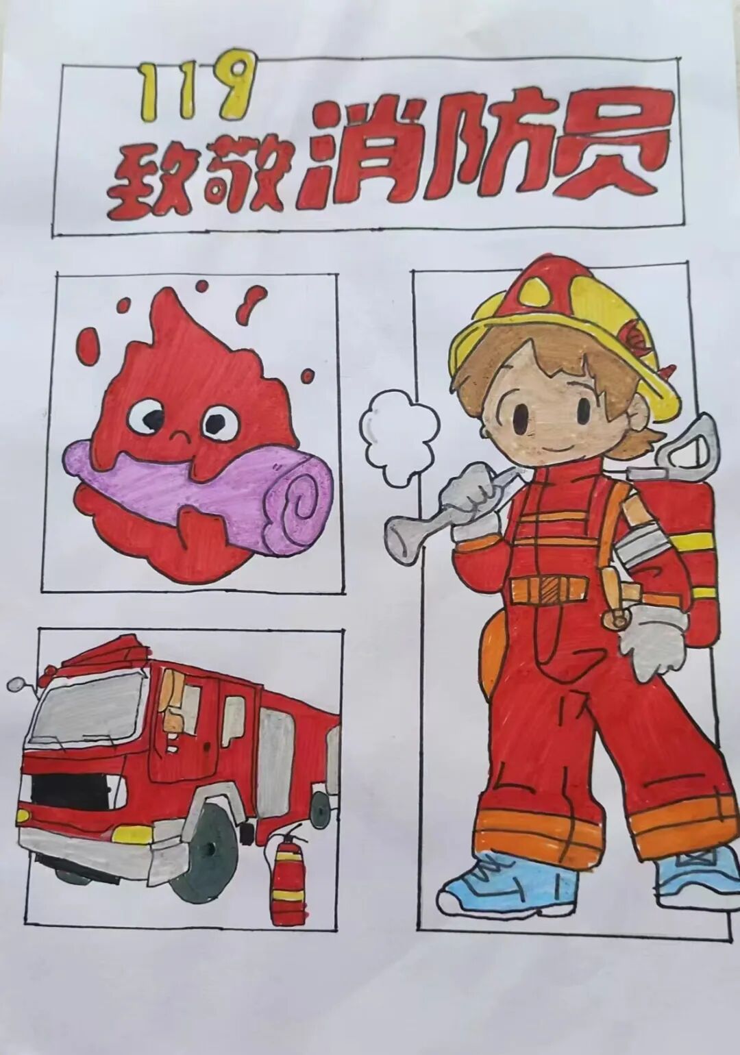 逆行无畏,致敬火焰蓝。孩子们对勇于奉献的消防员叔叔表达了最崇高的敬意,将自己制作的手抄报或绘画作品送给消防战士,并与消防战士合影。