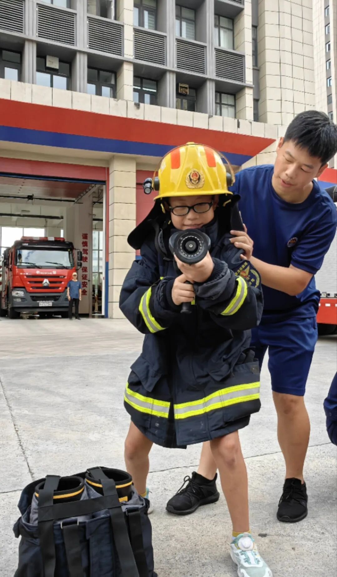 消防队员向孩子们介绍了一些基本的消防知识,比如如何报火警、如何正确使用灭火器,如何使用消防水带,救援时携带物品及着装安全等。