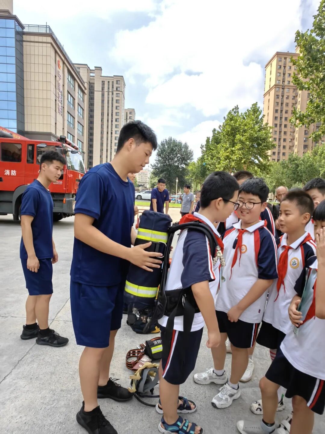 为了提高消防安全防范意识,普及消防安全知识,丰富小学生的暑期实践活动,濮阳市绿城小学“小树苗”志愿者于2024年8月3日上午,来到了示范区消防救援大队,和消防员来了一次“零距离”接触。