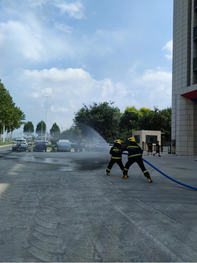 随着讲解的深入,学生们还一起观看学习如何使用高压水枪喷水。只见消防员们迅速响应,穿戴整齐的防护装备,手持高压水枪,动作娴熟地冲向“火场”。