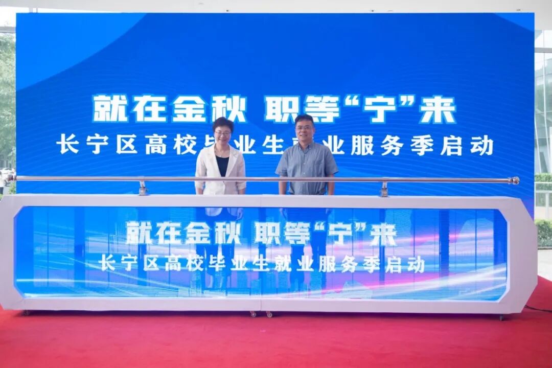 长宁区始终坚持把高校毕业生等青年就业作为重中之重,活动现场,长宁启动“就在金秋 职等宁来”长宁区高校毕业生就业服务季;同时,全市首场“商务区”门口招聘会也同步开展。