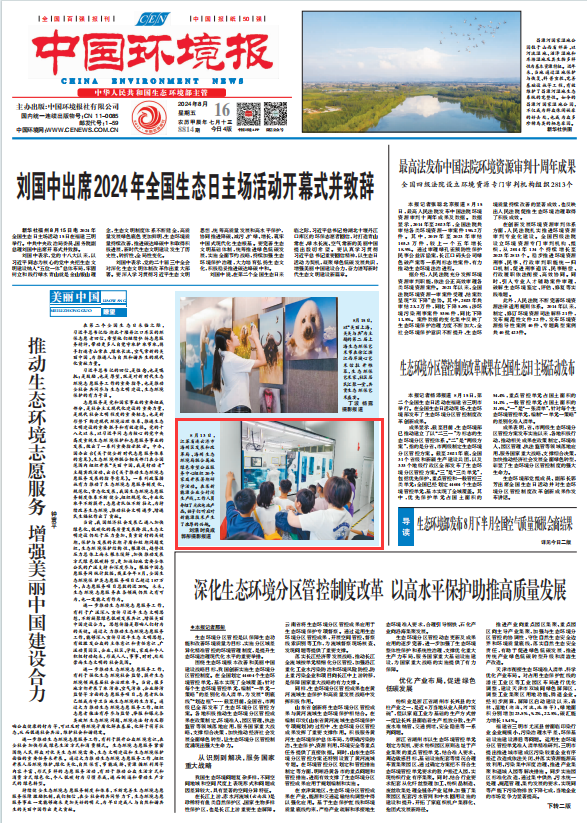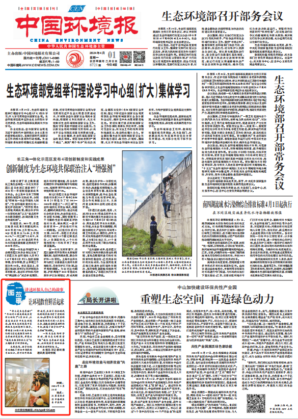 ?2024年4月1日《中国环境报》头版通过图片新闻报道海州“生态课堂”现场实景,生态环境宣传教育在身临其境中更加鲜活。