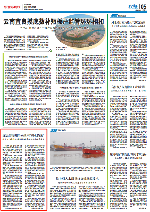 ?2024年1月30日《中国环境报》深入报道海州创新体制机制,升级基础设施、实施精细化管控,有效应对水环境挑战,成功实现水质持续改善,治水取得历史性突破!