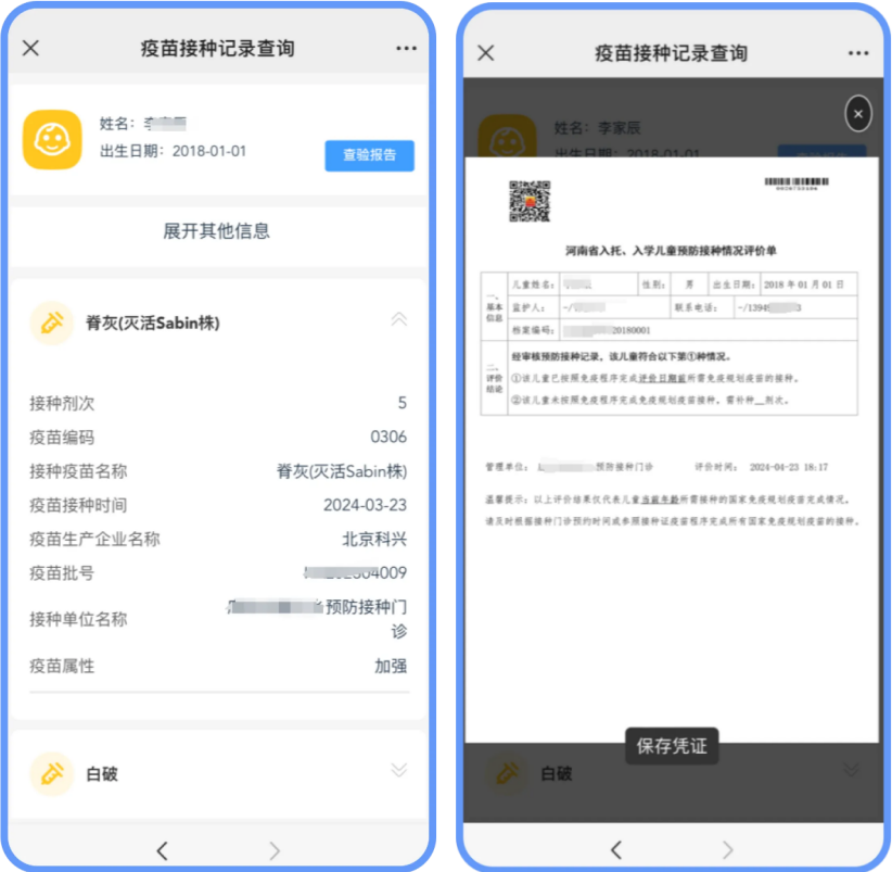 系统会自动生成《儿童入托、入学预防接种情况评价单》或者《儿童入托、入学预防接种情况评价单(未完成)》,并列出补种疫苗的种类和时间。这两种“查验评价单”均可作为入托、入学报名注册必备材料,打印即可。但对于未完成的情况,入托、入学后,家长要记得按预约时间继续带孩子去完成补种。