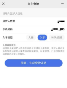 家长微信扫描小豆苗入学查验二维码,按要求输入相关信息后点“同意,生成查验证明”,若完成全程接种,即可开具预防接种情况评价单。