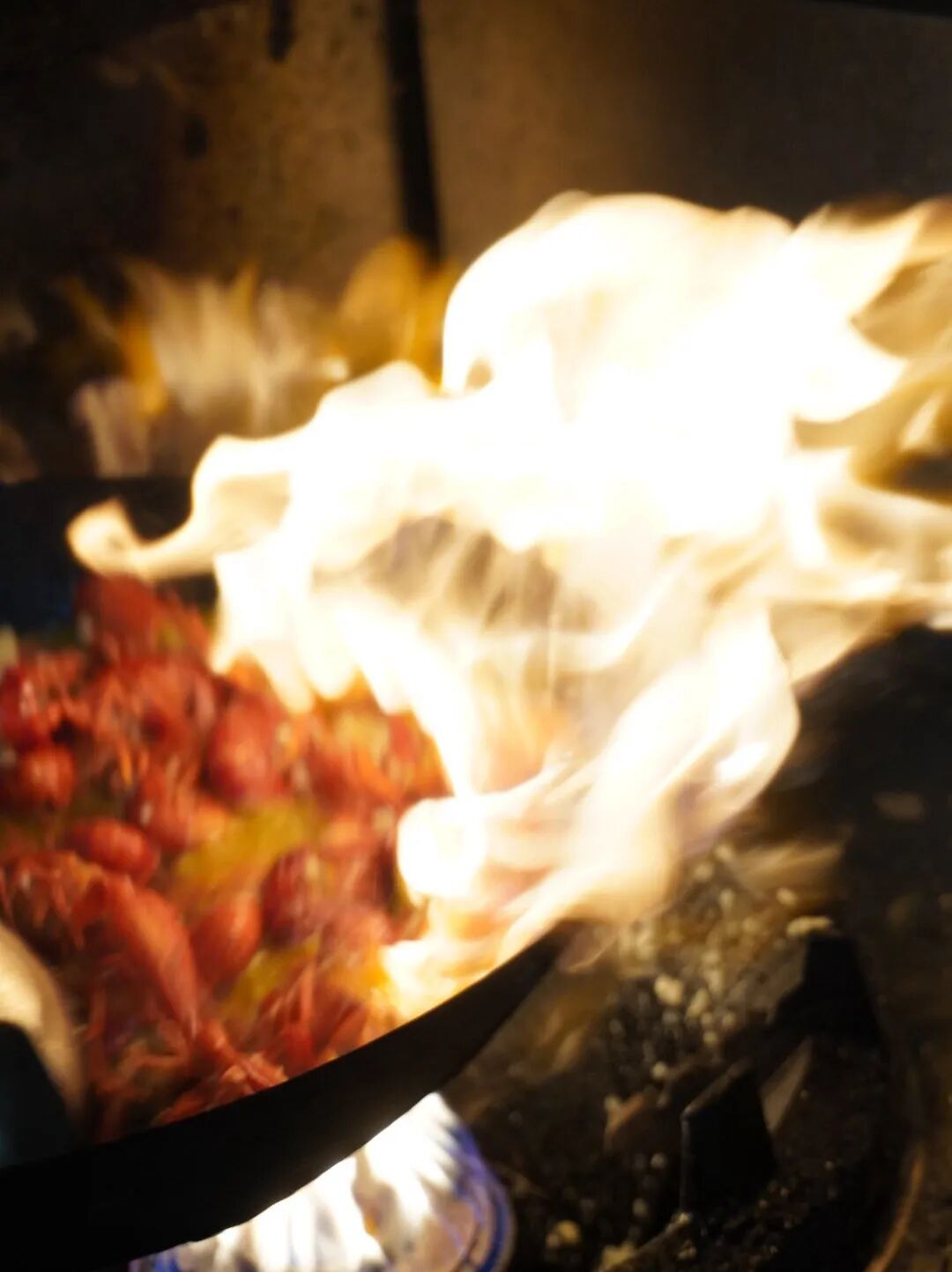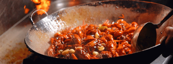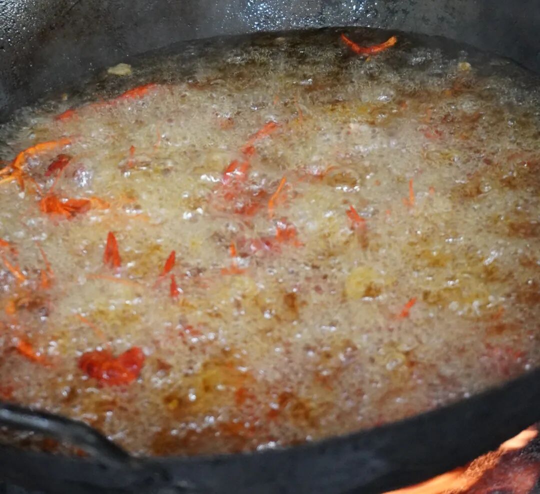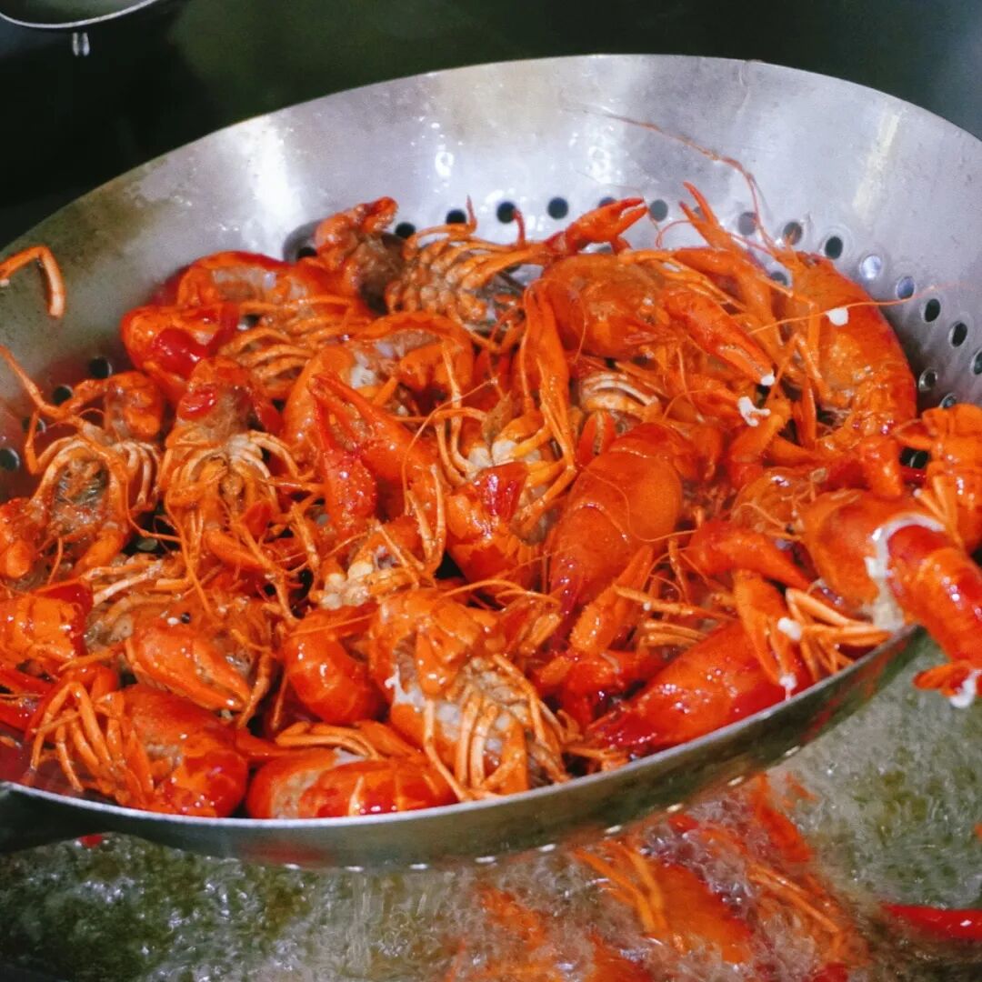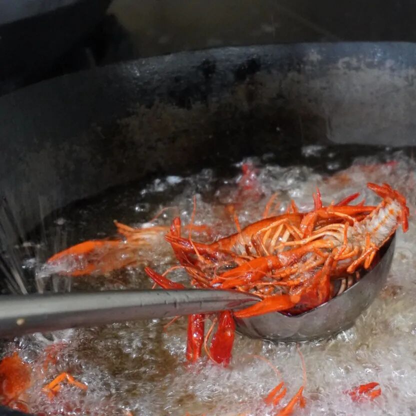 生猛鲜活的小龙虾放入滚烫的油锅里