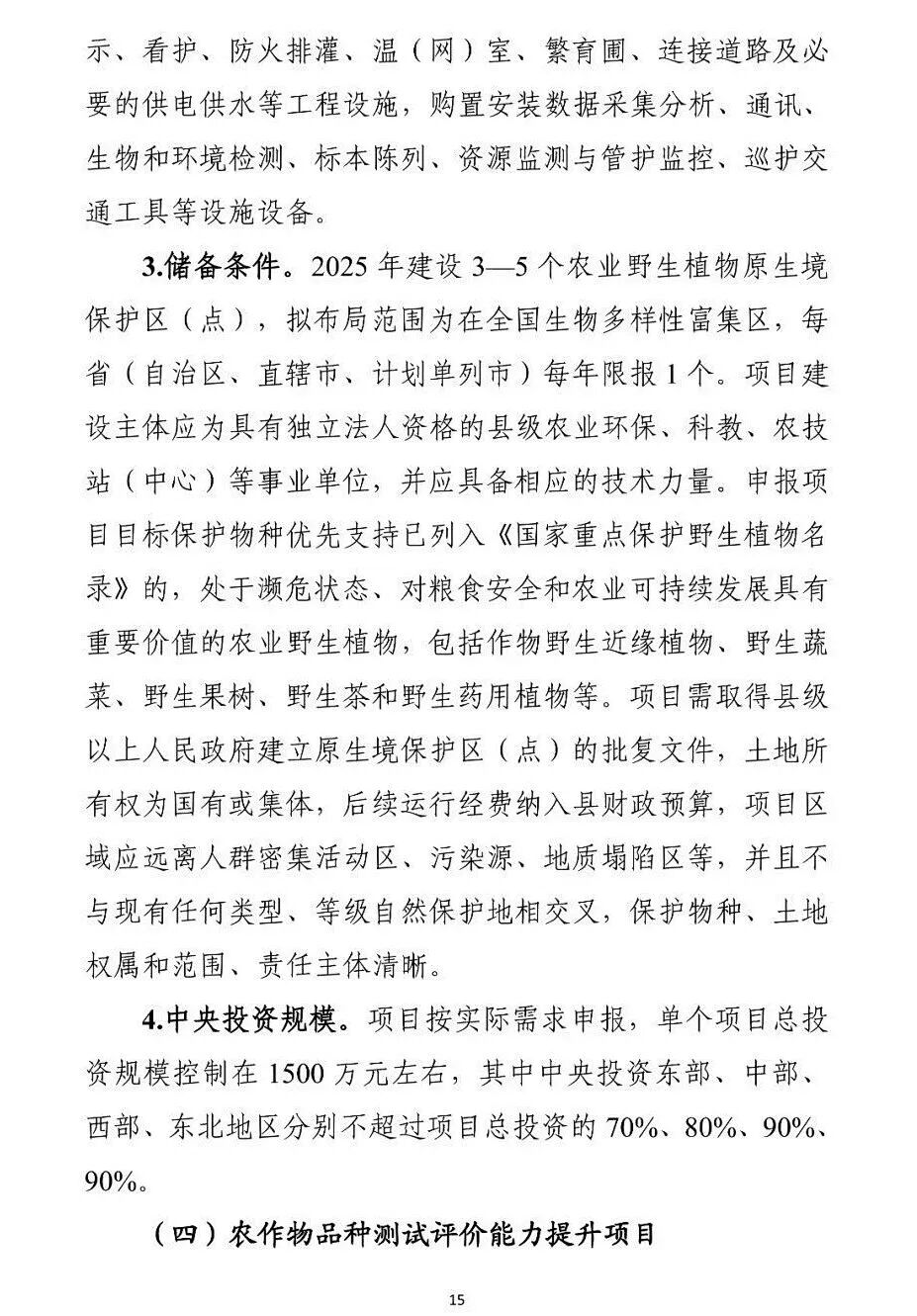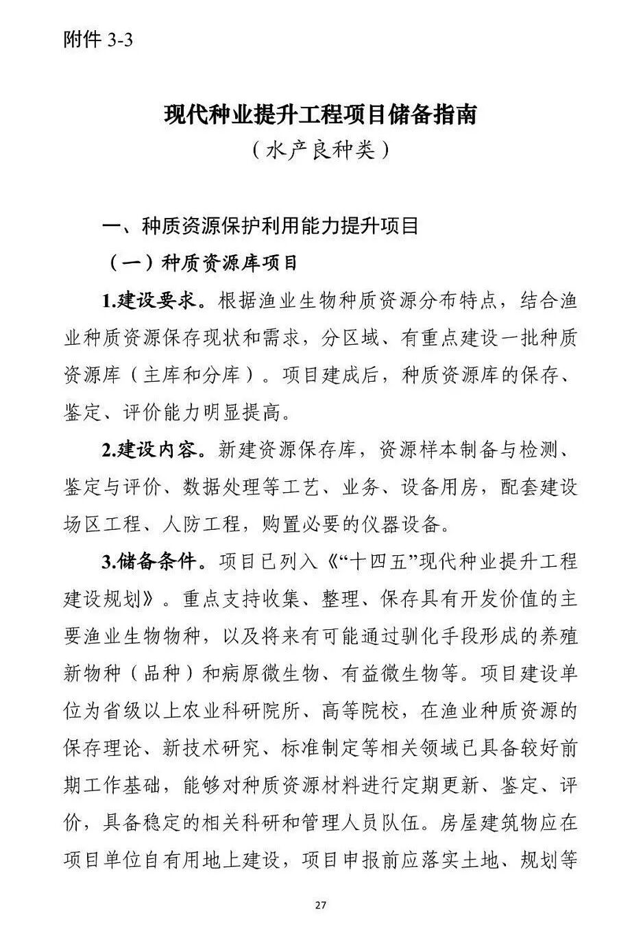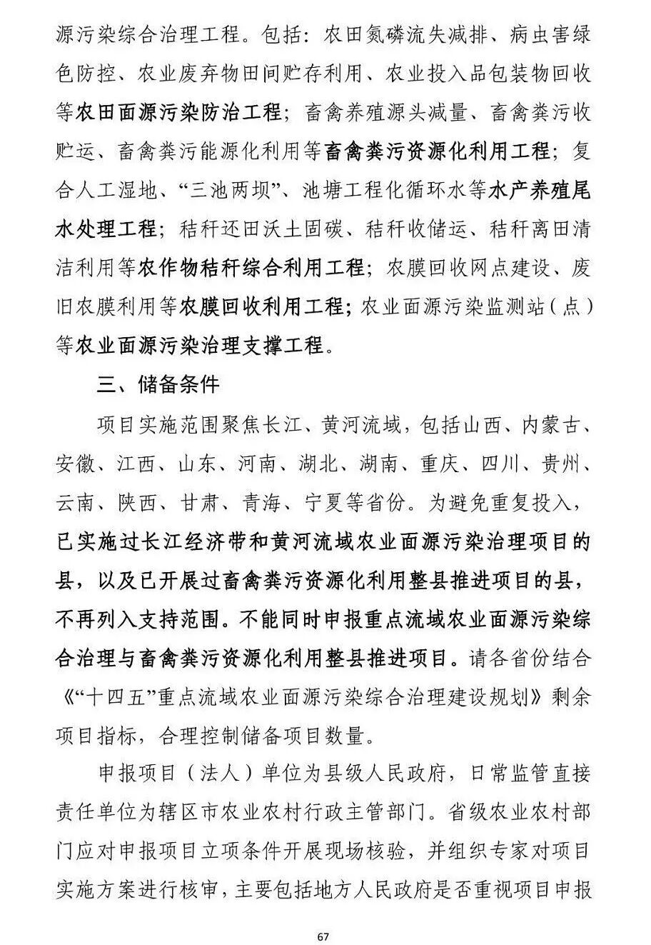 2.要着眼2025年和“十五五”时期,对标“两重”建设目标任务,结合本地区农业农村基础设施短板弱项和实际需要,围绕高标准农田建设、单产提升等农业生产发展,现代种业、动植物保护、农业行业基础能力建设,畜禽粪污、面源污染治理、长江生物多样性保护等农业绿色发展,做好项目储备工作。(具体见附件指南)