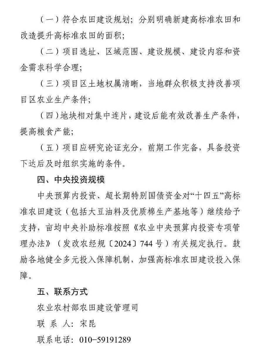 12.中央预算内投资、超长期特别国债资金对“十四五”高标准农田建设(包括大豆油料及优质棉生产基地等)继续给予支持。