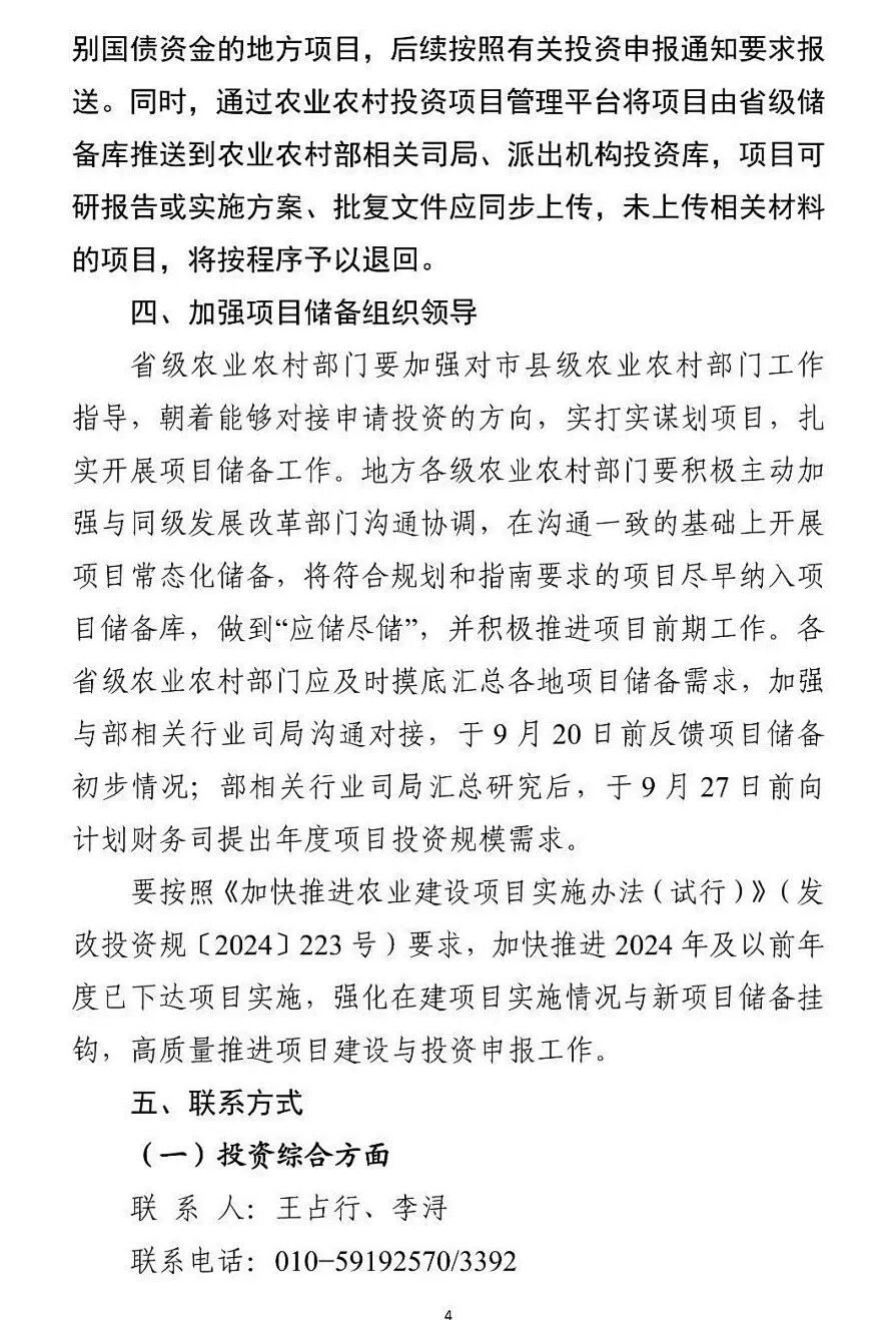 3.要结合农业发展需要,既立足当前、又着眼长远,注重谋划储备一批标志性重大项目。
