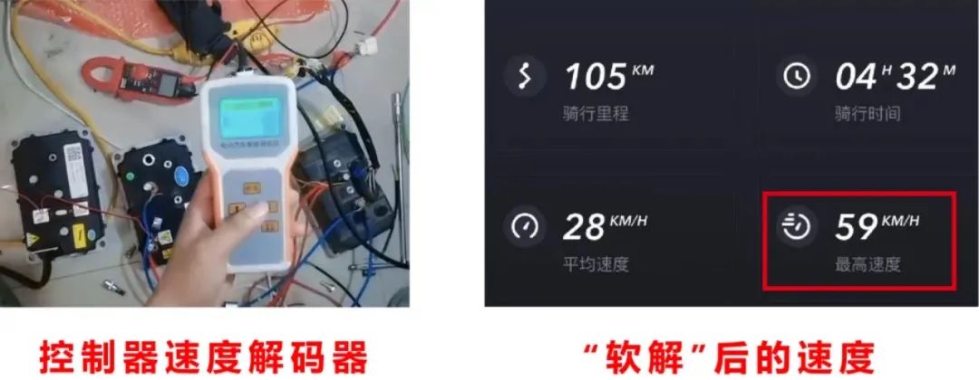 ■ 篡改车速限值,新国标电动自行车最大车速限值为25km/h,改装后最大车速可达到60km/h;