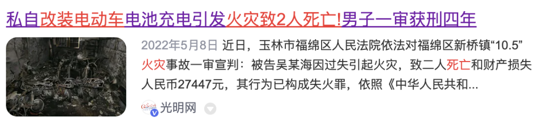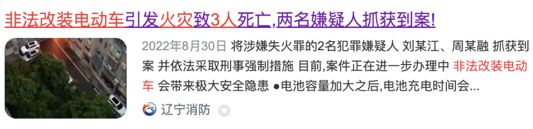 改装电池后,接线端与电线可能会受损,如果此时随意扣搭导线打火,容易引燃电池充电时内部聚集的氢气导致爆炸。