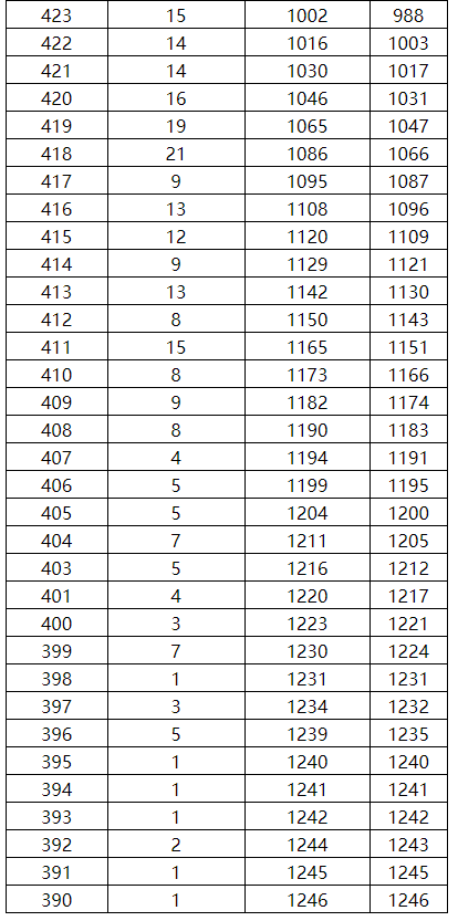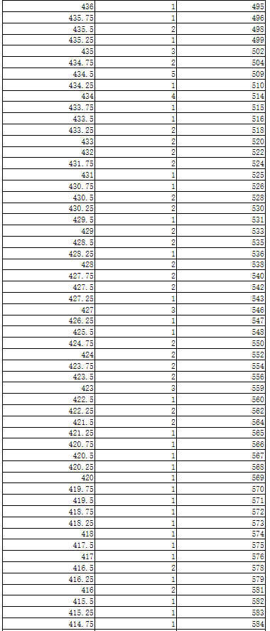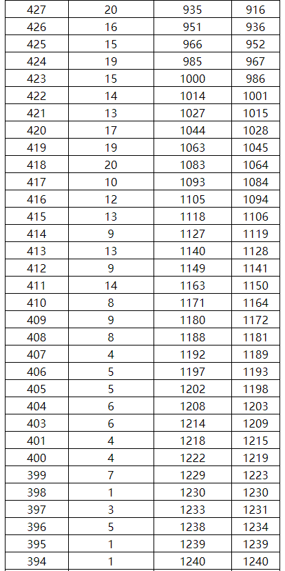 一分一段表是?高考成绩公布后,?教育部门公布的一种统计表格,它将全省同科类考生的成绩按照一分一段进行统计,显示每个分数段上有多少名考生。帮助考生了解自己在全省的排名和位置,从而更准确地填报志愿院校。