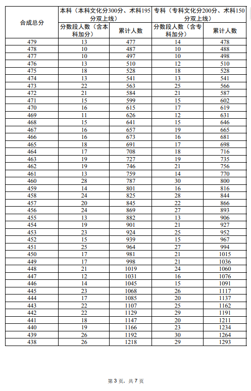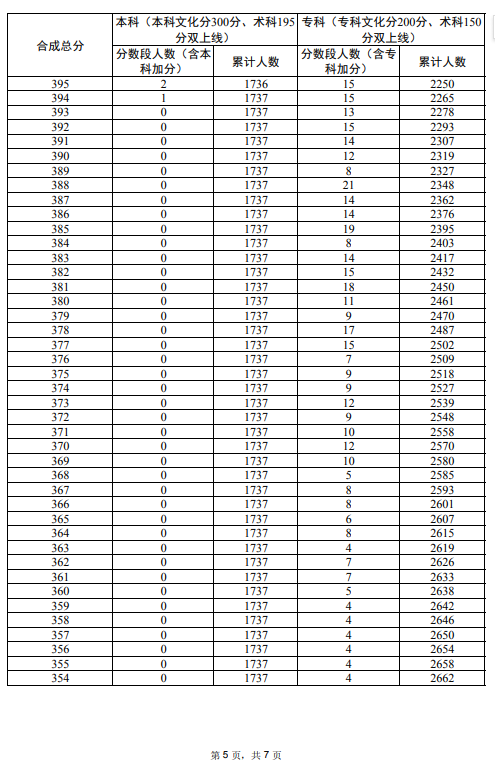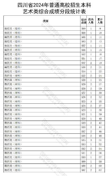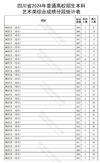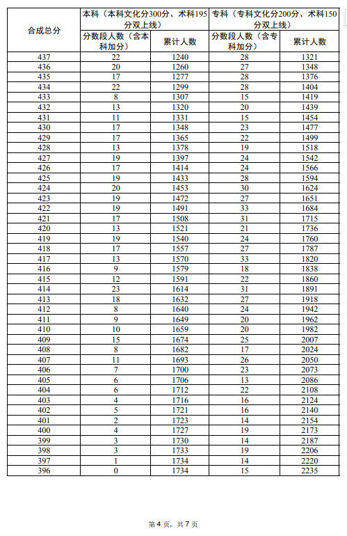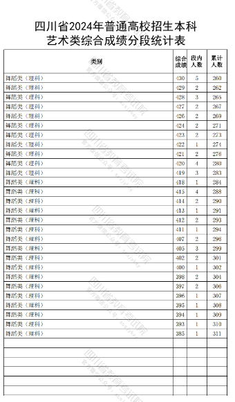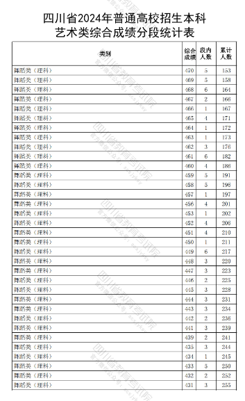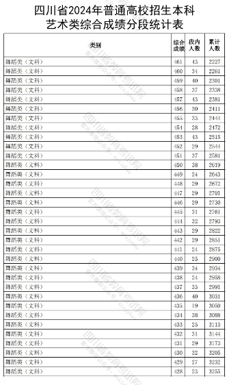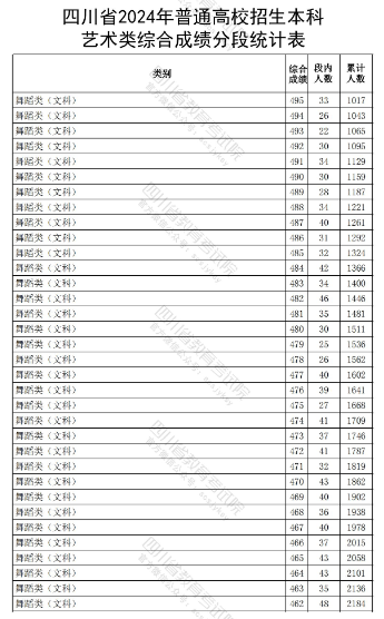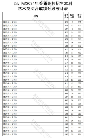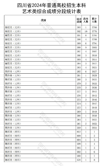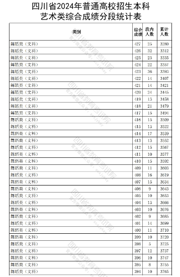 <四川省2024年普通高校招生本科艺术类综合成绩、体育类专业成绩分段统计表>↓↓↓