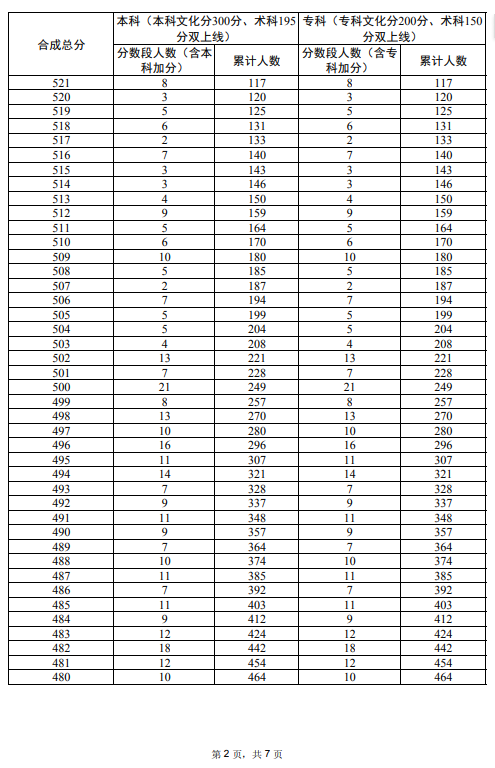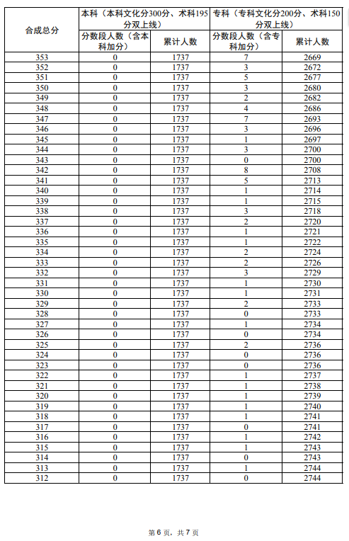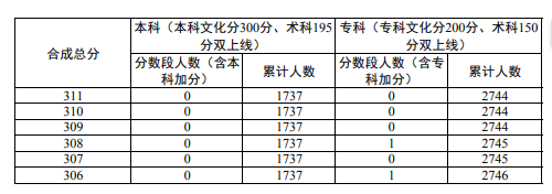 <浙江省2024年普通高校招生艺术类二段线上考生综合分分段表>↓↓↓