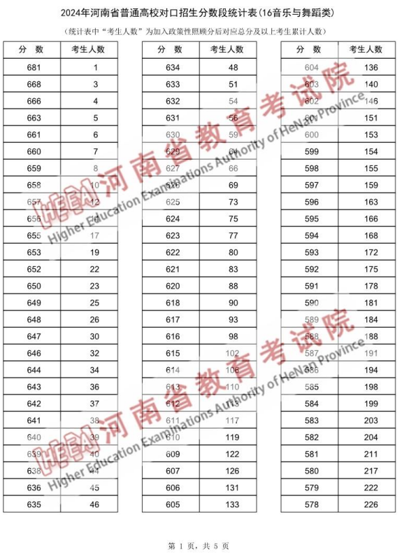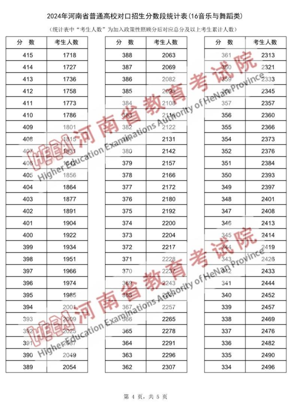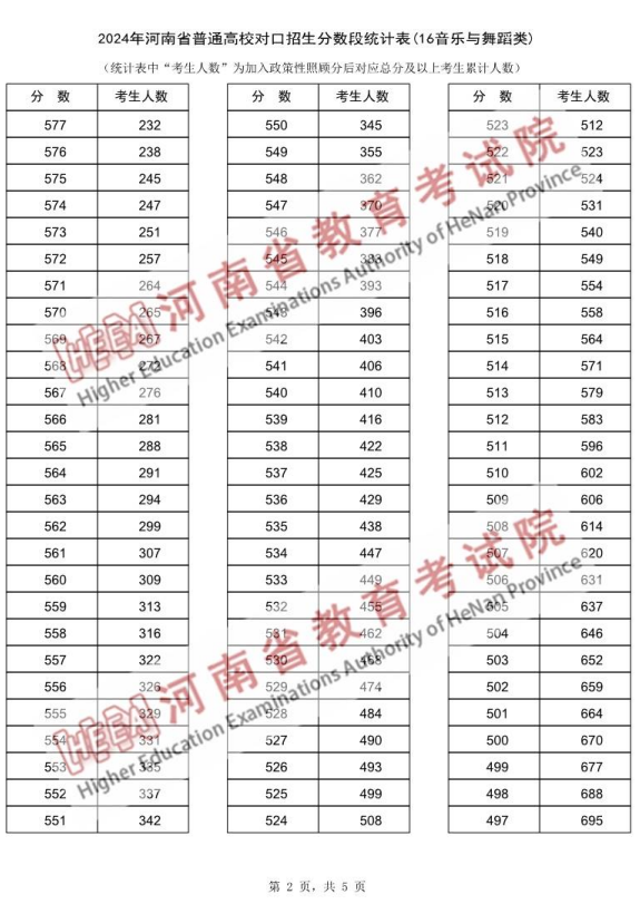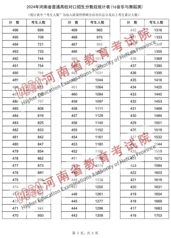 <河南省2024年普通高校对口招生分数段统计表>↓↓↓