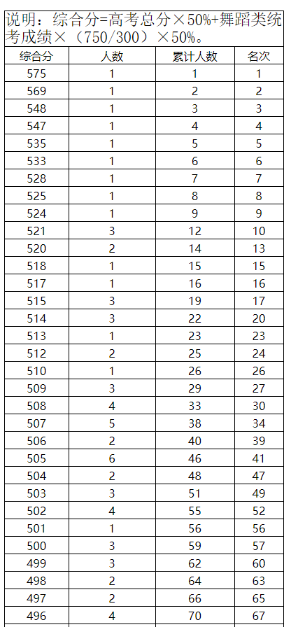 在今年的高考录取中,我们舞蹈艺考生的录取基本都是依据文化课和专业课所占比例的计算公式计算综合分,然后进行排名录取的,所以知道孩子的成绩在省内排名情况对志愿填报非常重要。