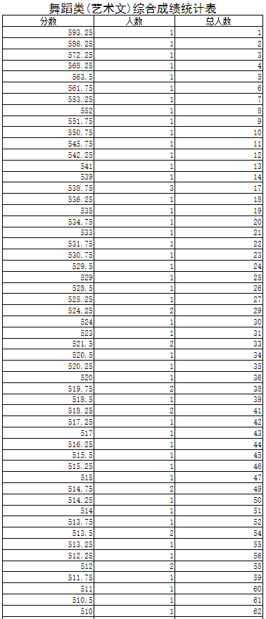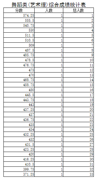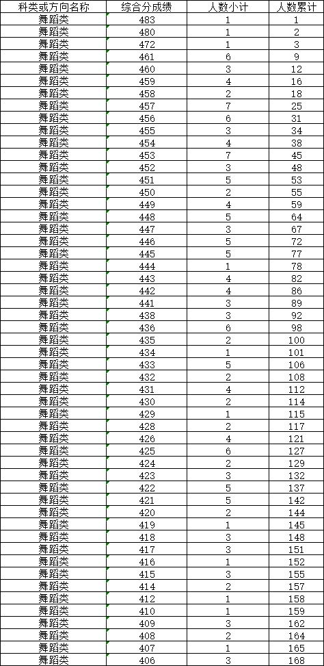 - 舞蹈类专业统考可填报考生成绩分布表-
