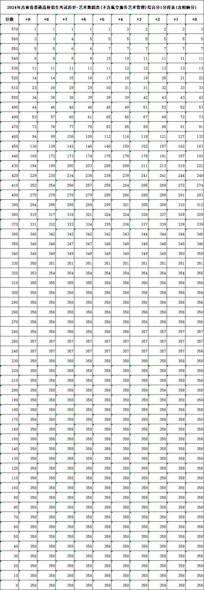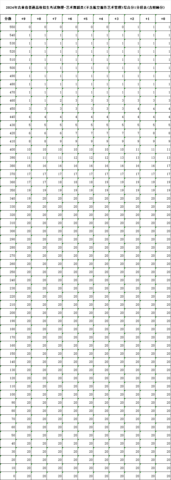 <2024年吉林省普通高校招生考试艺术类综合成绩一分段表>↓↓↓