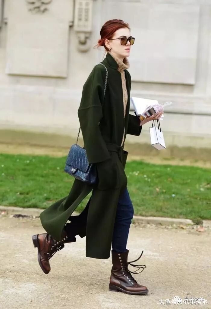 入秋降温后你还没get秋冬流行色吗?清爽十足的牛油果绿已经不适合了,秋冬保暖搭配法才是关键,墨绿色大衣不仅仅只是穿着暖和,视觉上也感受到了暖和。不知道怎么穿,就选墨绿色的大衣吧,时尚、保暖、显白、显气质。