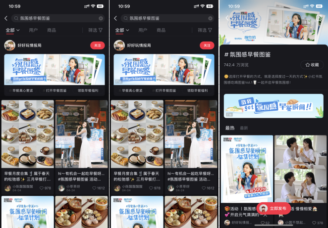 维他奶还联合小红书推出#氛围感早餐图鉴#,并联动多家网红及连锁早餐品牌,在线下7城共同发起#真心要紧早餐店#快闪活动,为大家带来不同风格的早餐套餐,国潮经典/法风慵懒/美式复古/日系清新等,真心诚意十足。