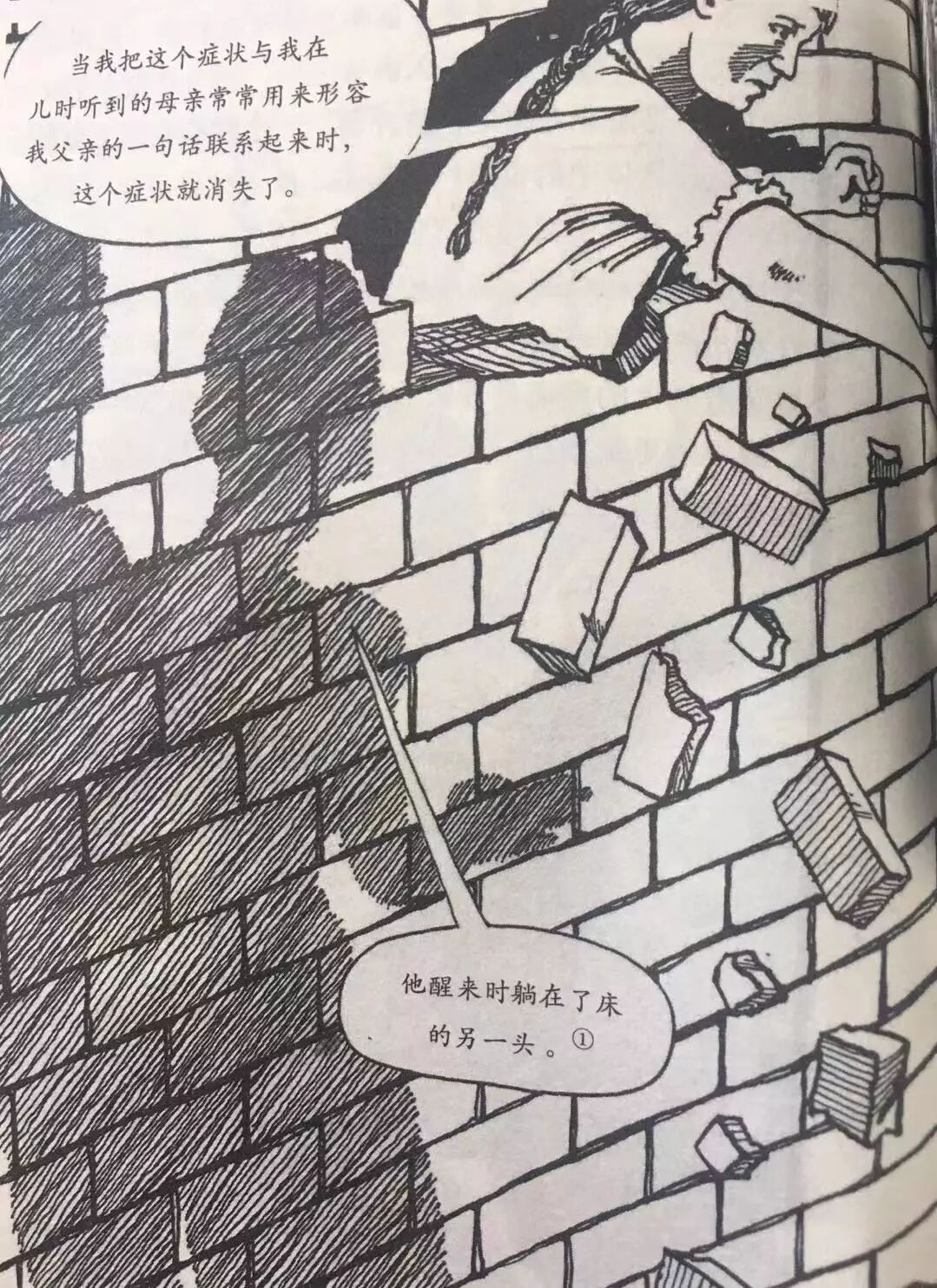 当把这个症状与她在儿时听到的母亲常用来形容父亲的一句话联系起来时——他醒来时躺在了床的另一头(这句话在俚语中的意思是病人的父亲脾气暴躁,早上一起床就会心情不好地冲人发脾气)——这个症状就消失了。