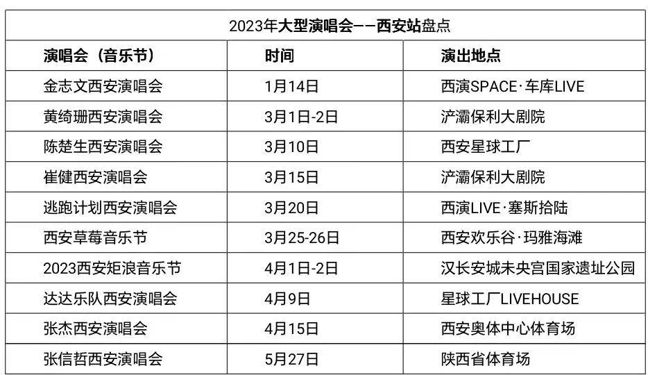 于西安而言,张信哲演唱会雨中万人合唱,让粉丝感受“回忆杀”魅力;在张杰演唱会上,粉丝“觉得自己每个细胞的记忆都被唤醒”,本月底举行的许巍演唱会门票也是一抢而空……