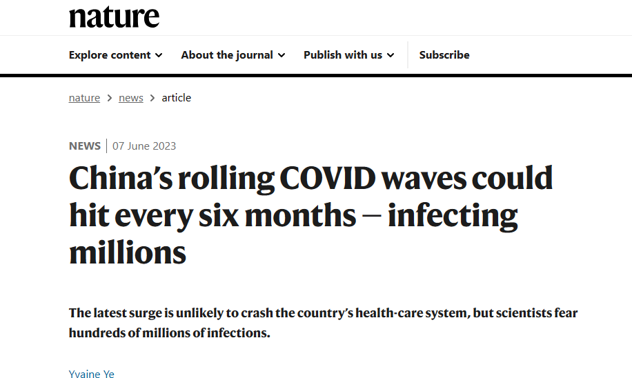 6月7日,《自然》杂志(Nature)刊登了一篇关于新冠的研究。研究指出,每6个月或将出现一次感染周期,而滚动的感染浪潮会带来出现新变种的风险。“不幸的是,这种病毒的一个新现实是我们会反复感染,”西雅图华盛顿大学健康指标与评估研究所的流行病学家阿里·莫克达德(AliMokdad)说。“令人担心的是,这种病毒会产生一种新的变种,可以与目前的变种竞争,而且更加严重。”