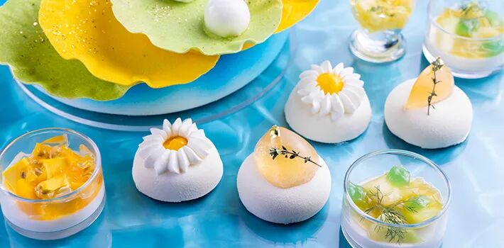 这里有精选的芒果甜品,热带芒果和百香果的美妙滋味,口感丰富,绝对能带给你全新的甜点体验!甜美的蜜瓜布蕾,配以白巧克力,第一口就能感受到夏日的气息!
