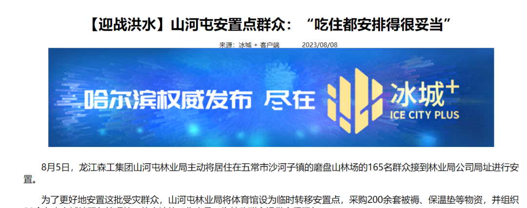 8月5日,龙江森工集团山河屯林业局主动将居住在五常市沙河子镇的磨盘山林场的165名群众接到林业局公司局址进行安置。