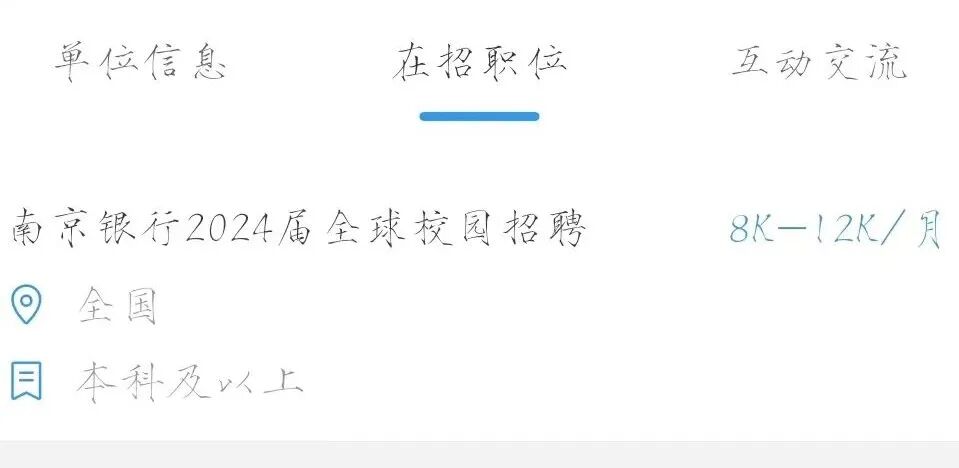 注:敬请点击链接https://job.njcb.com.cn/#/index/notic/details?id=301&tableName=notic进入南京银行招聘官网查看完整公告及各招聘岗位设置、岗位职责和招聘条件。针对部分分行区县支行单独设立岗位,欢迎有志于支持区县地方经济发展的应届毕业生踊跃报名。