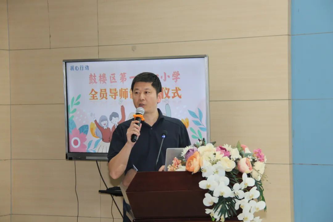 党支部书记、校长董富强为导师团团长颁发了聘书。董书记寄语全校老师,尊重平等是作为导师的基本原则,要着眼于学生的整体成长与发展,关注学生的精神生活质量与个性化学习需求,满足不同学生多样化的发展需要,让每一个学生个性得到张扬,享受成功的快乐,成为他们真实可信的朋友。