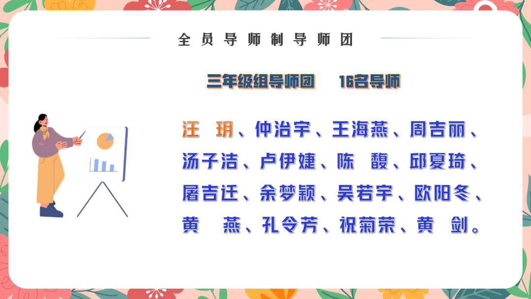 党支部副书记潘亮向全体教师介绍了“全员导师制”的重要意义,他指出建立“全员导师制”旨在通过建立“学生人人有导师、教师人人是导师”的制度体系,切实增强全体教师的育人意识和能力、深化班主任与学科教师的协同合作、优化教师与家长之间的家校沟通,缓解学生过度的学业压力、情感压力和家长的教育焦虑,重构与现代教育治理体系相适应的和谐师生关系、家校关系和亲子关系,打造“家—校—社”共育的中小学生全面发展支持网和身心健康守护网,显著提高学校育人工作的针对性和实效性。