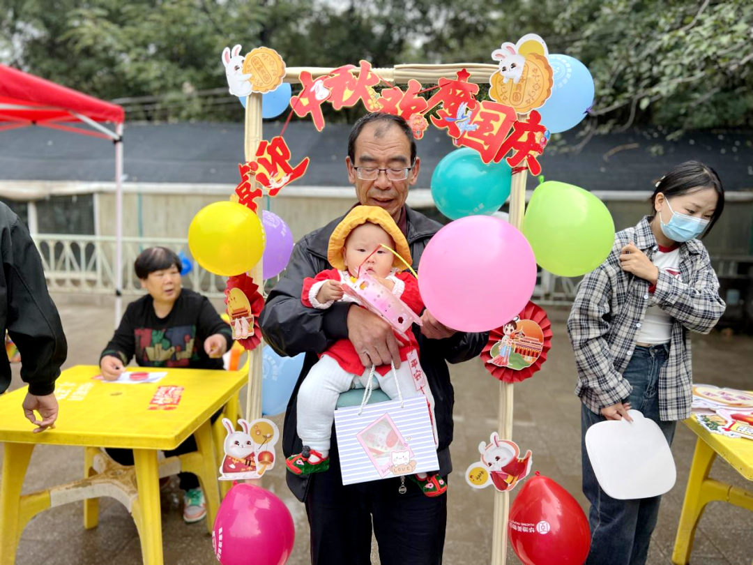 美好虽无法永恒,但我们可以用相机把它记录下来,居民们拿着自己喜欢的手牌,站在相框中,将这一刻的欢乐记录在册,是纪念,也是回忆,中秋节年年有,但一样的打卡拍照点却不一定有。居民陈叔叔说:“这个打卡点都是现在小年轻们玩的,没想到今天我也可以赶流行,打卡拍照了,真的很开心,有说,有玩,真的很好”。