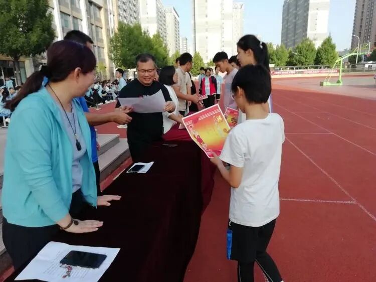 升国旗,奏国歌,鲜红的国旗下,刘青主任代表学校致辞,表达了对全体参会人员深切的祝福与盼望,裁判员代表薛振江老师和运动员代表范逸臣同学庄严宣誓,铿锵有力的誓言尽显饱满的激情和严谨公正的态度。