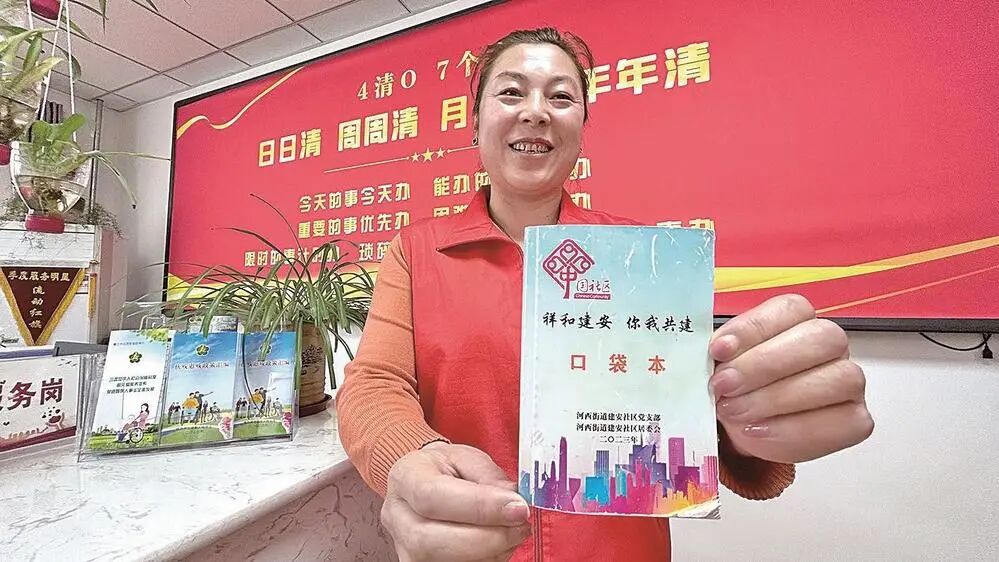 格尔木市河西街道办事处用口袋本记录群众反映的问题。