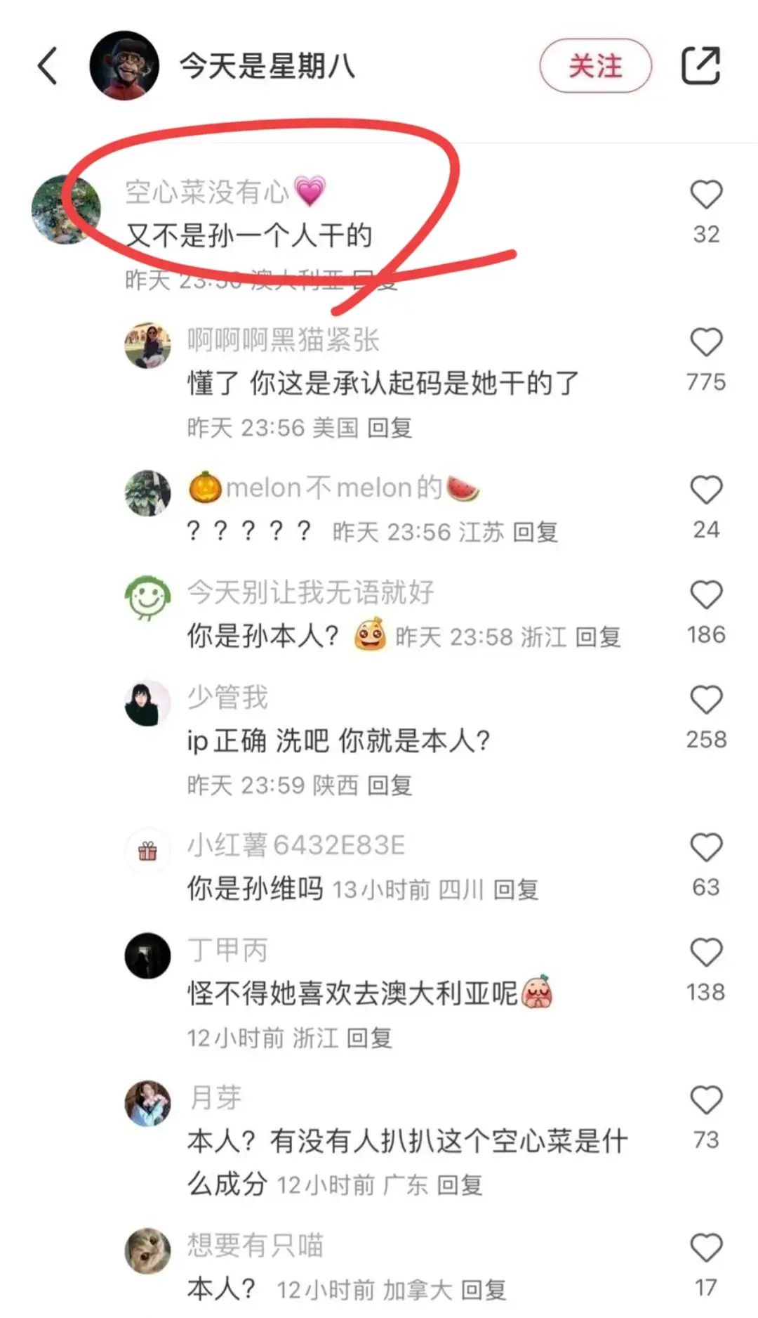 结果在网友细扒之下发现,这位名为“卷心菜没有心”的网友,竟然就是孙维本人。