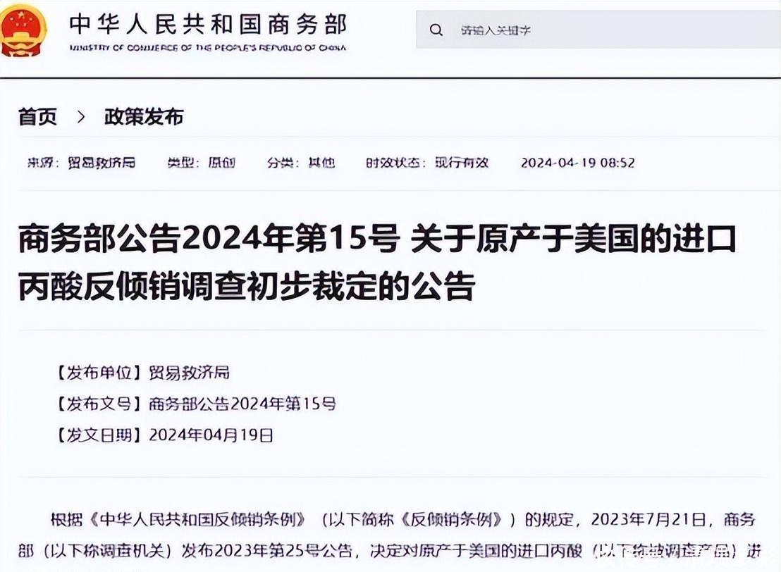 ?????? 美国总是自以为是地对他国进行所谓的“301调查”,随意指责他国不公平贸易。最近,他们又将矛头指向中国的海事物流和造船业。但中国不会坐视不理,我们迅速对原产于美国的丙酸进行反倾销立案调查。丙酸在化工领域至关重要,但我们已有自己的生产基地,年产量可观,足以摆脱对美国的依赖。