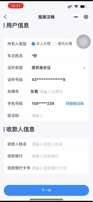 2.工作人员核验通过后将车辆移交至登记上牌点报废回收处,填写报废车收车凭证给车主,车主在《电动自行车注销登记申请表》车辆所有人位置签名并确认;